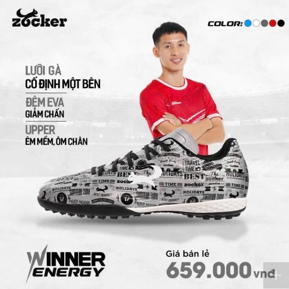 Giày bóng đá Zocker Winner Energy màu Silver/Black/White (bạc–đen–trắng)